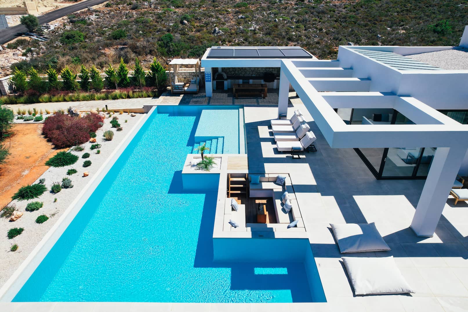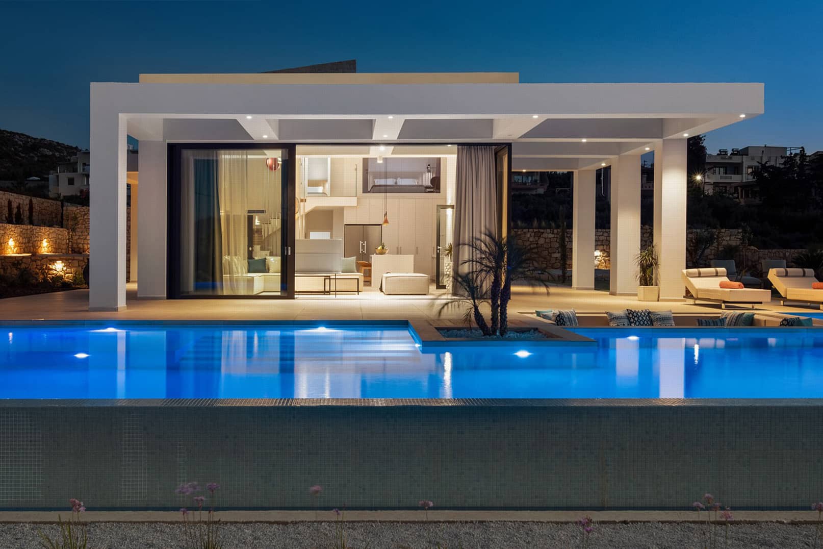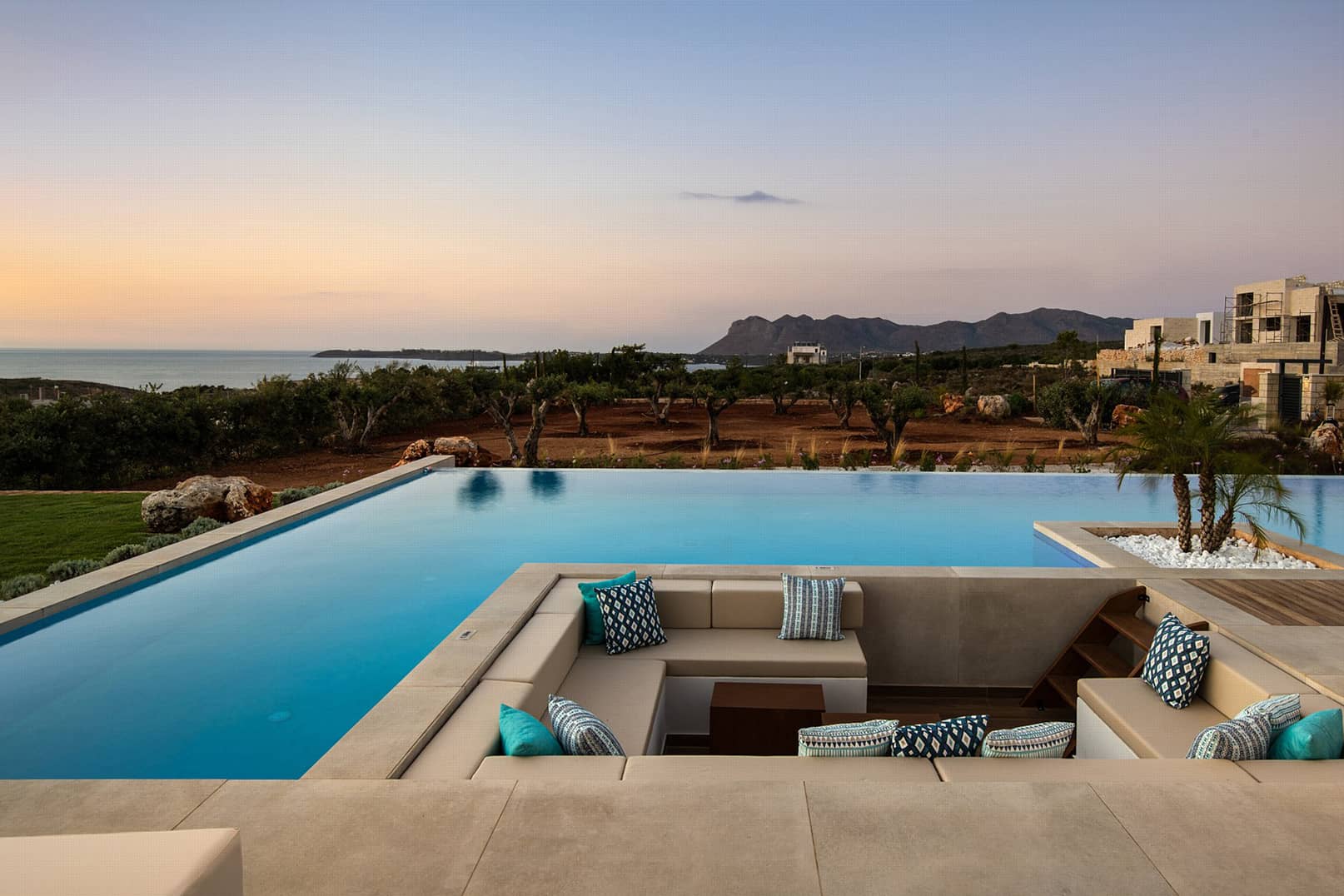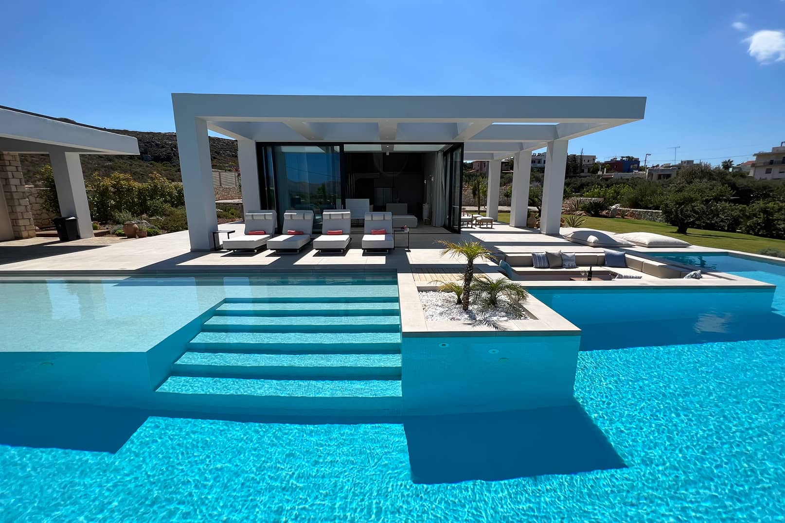 Chic Dream Villa by Athena, a luxury villa with pool in Chania, is an extremely elegant, modern two-level building that can accommodate 8 people, with unrestricted sea views, which combines classic comfort with unpretentious luxury.