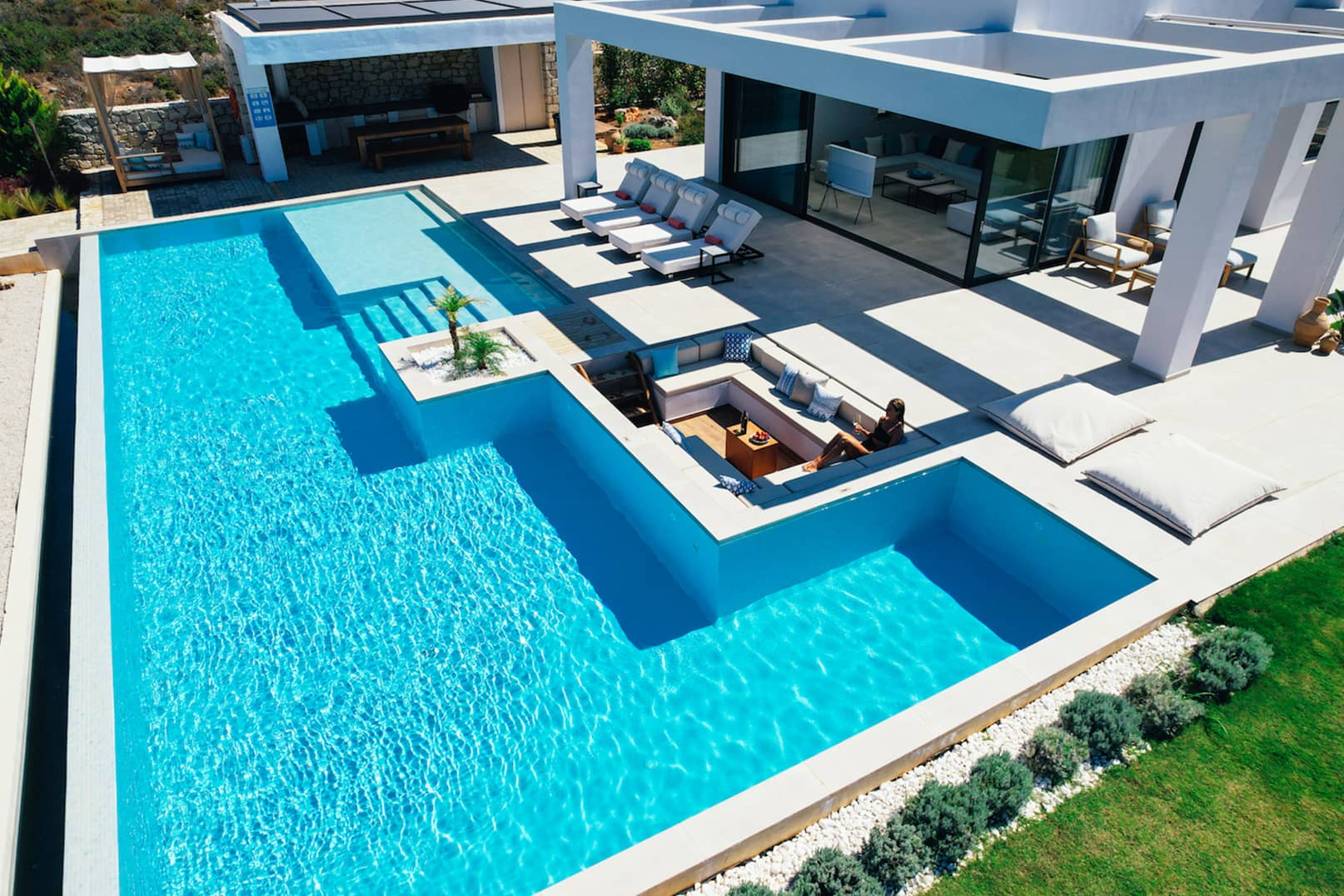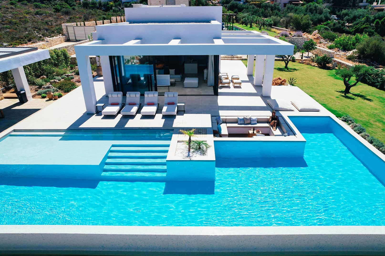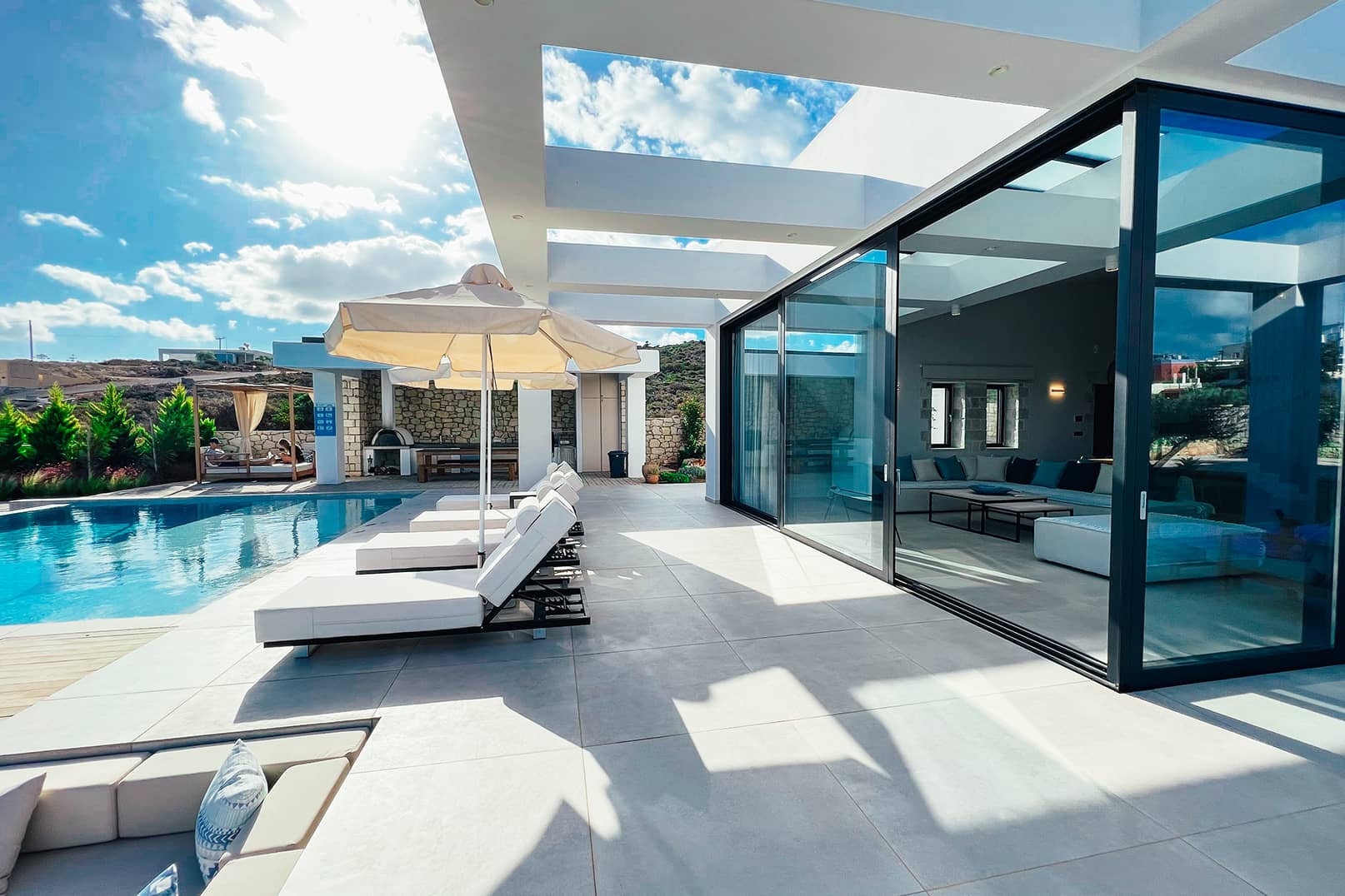 Chic Dream Villa by Athena, a luxury villa with pool in Chania, is an extremely elegant, modern two-level building that can accommodate 8 people, with unrestricted sea views, which combines classic comfort with unpretentious luxury.