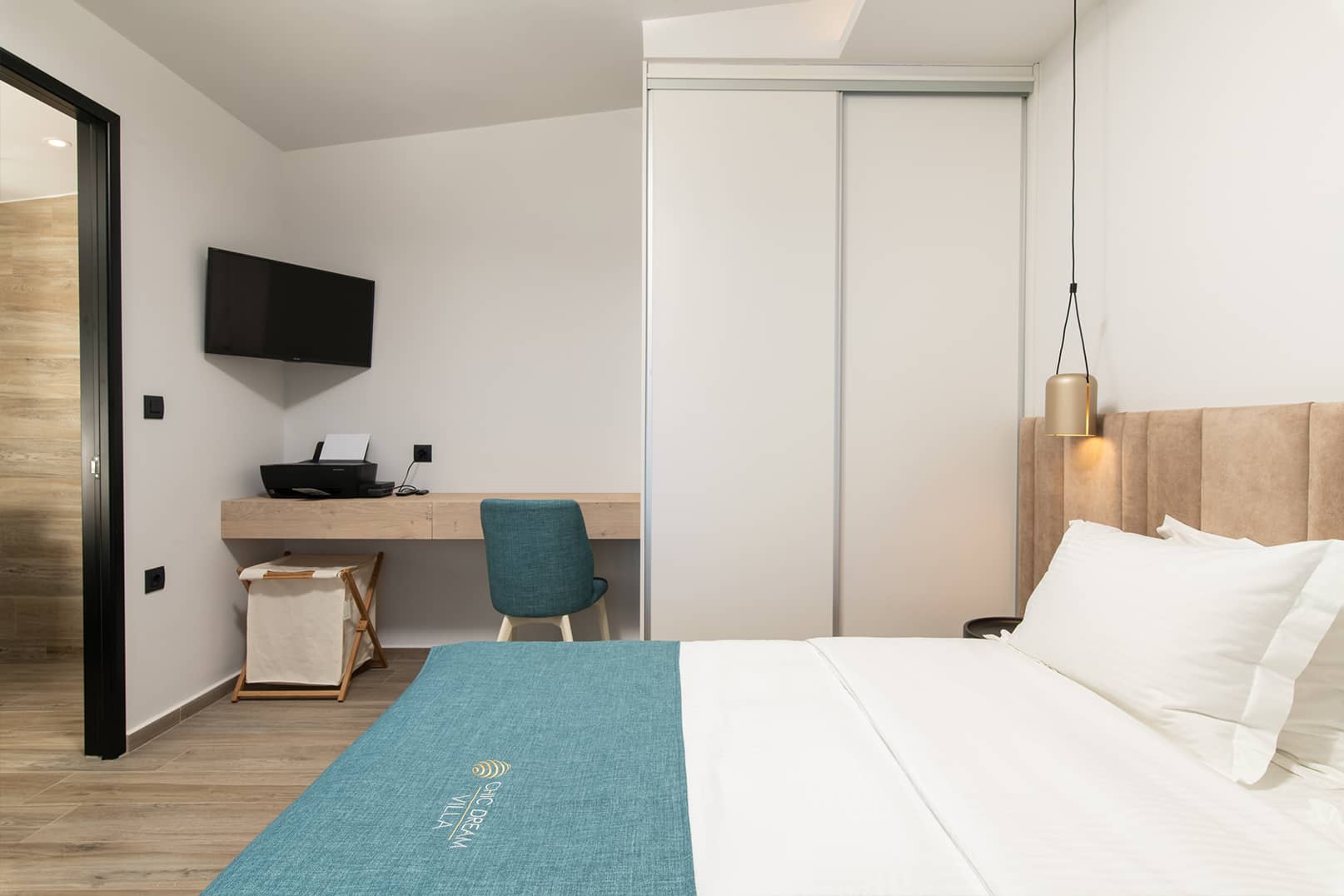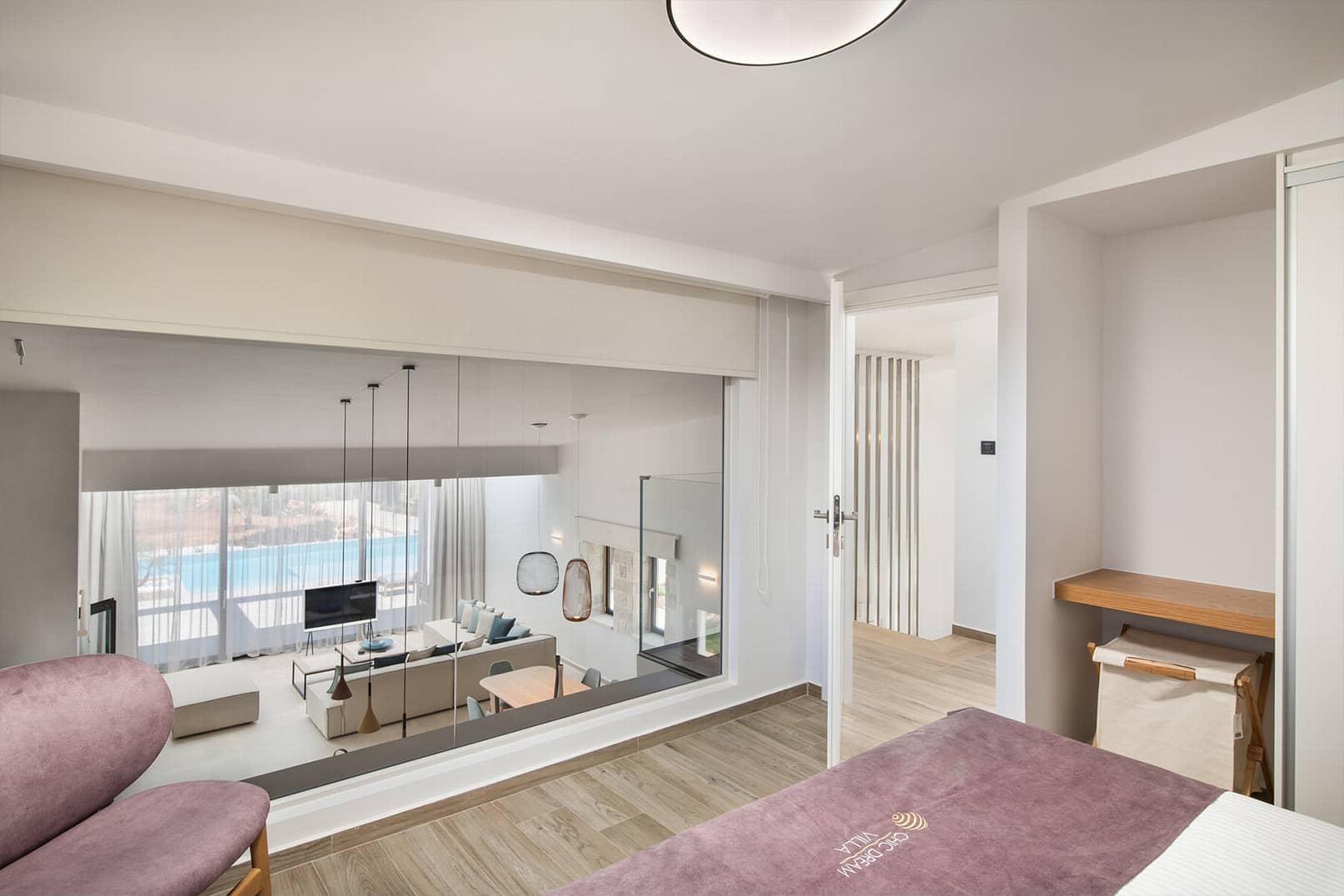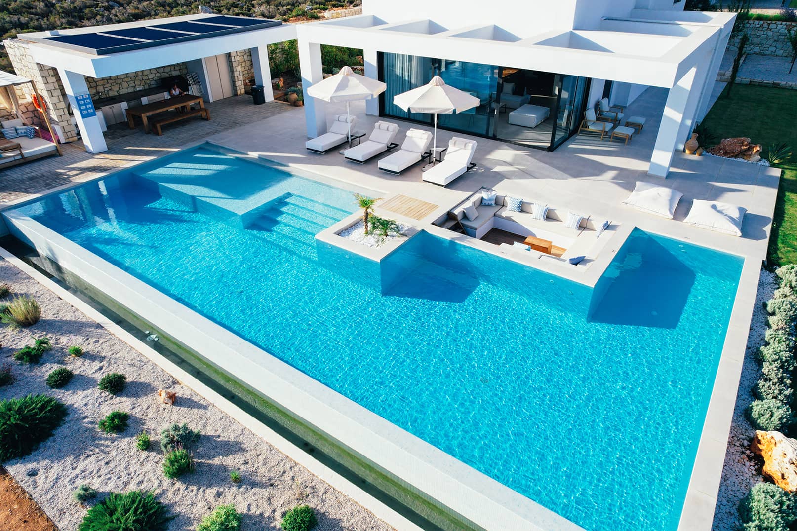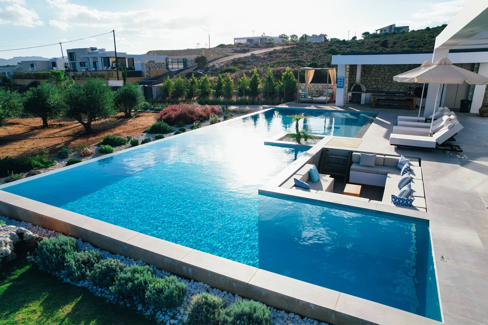 Chic Dream Villa by Athena, a luxury villa with pool in Chania, is an extremely elegant, modern two-level building that can accommodate 8 people, with unrestricted sea views, which combines classic comfort with unpretentious luxury.